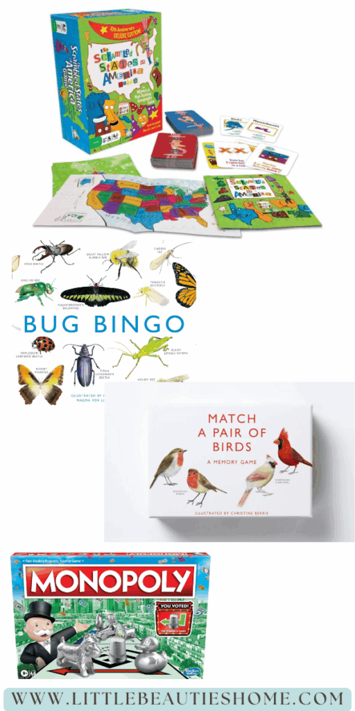 If you have insect loving kiddos (mine aren’t haha but we have this and have played it a lot!) this game is right up their bug loving alley! Like the Match a Pair of Birds game above, this bingo game is beautifully illustrated. Learning all of the proper names for each type of insect (listed on each card) makes this a great game to add to your homeschool.